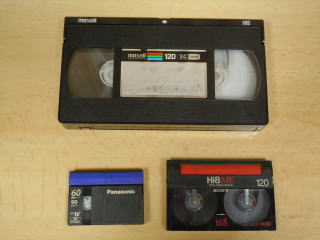 | 現在、 Video8・Hi−8のダビングは機器の調子が悪い為、 致しておりません。 再開まで、しばらくお待ちください。 VHS・S−VHS・MiniDVはダビング可能です。 |